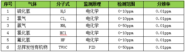 E3000选用高精度进口气体传感器,对园区大气污染物进行精确、稳定的连续监测。每个监测设备可同时检测NH3、HCl、HF、Cl2、H2S、TVOC等多种气体污染物的浓度值。对于未来扩展监测需求还可以通过增加传感器,很方便实现对其它特征污染物的监测。