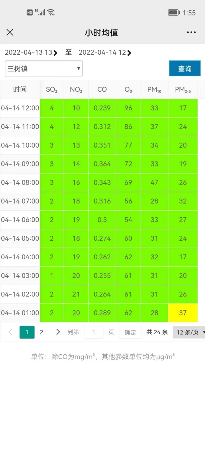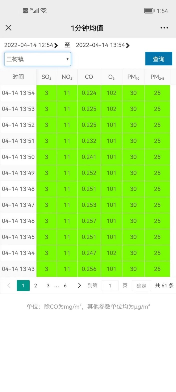 镇/街空气自动监测站每分钟上传一次监测数据。系统提供分钟数据查询功能,即实时数据。
