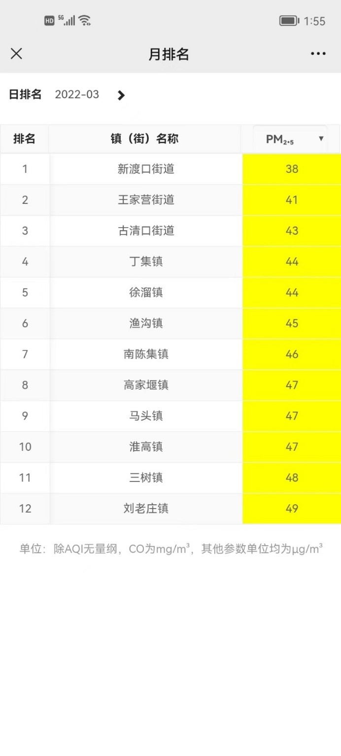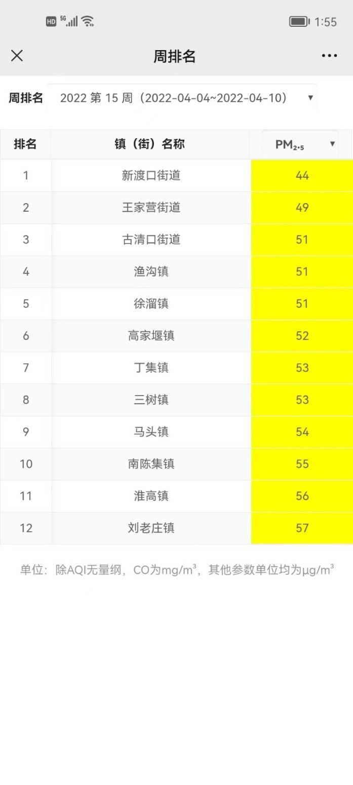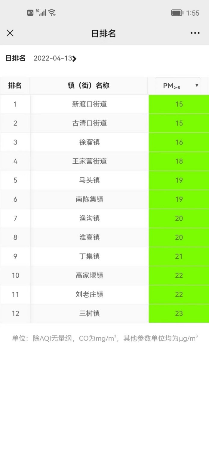 排名功能包括镇街空气质量的日排名、周排名和月排名。主要包括PM2.5和臭氧的排名。