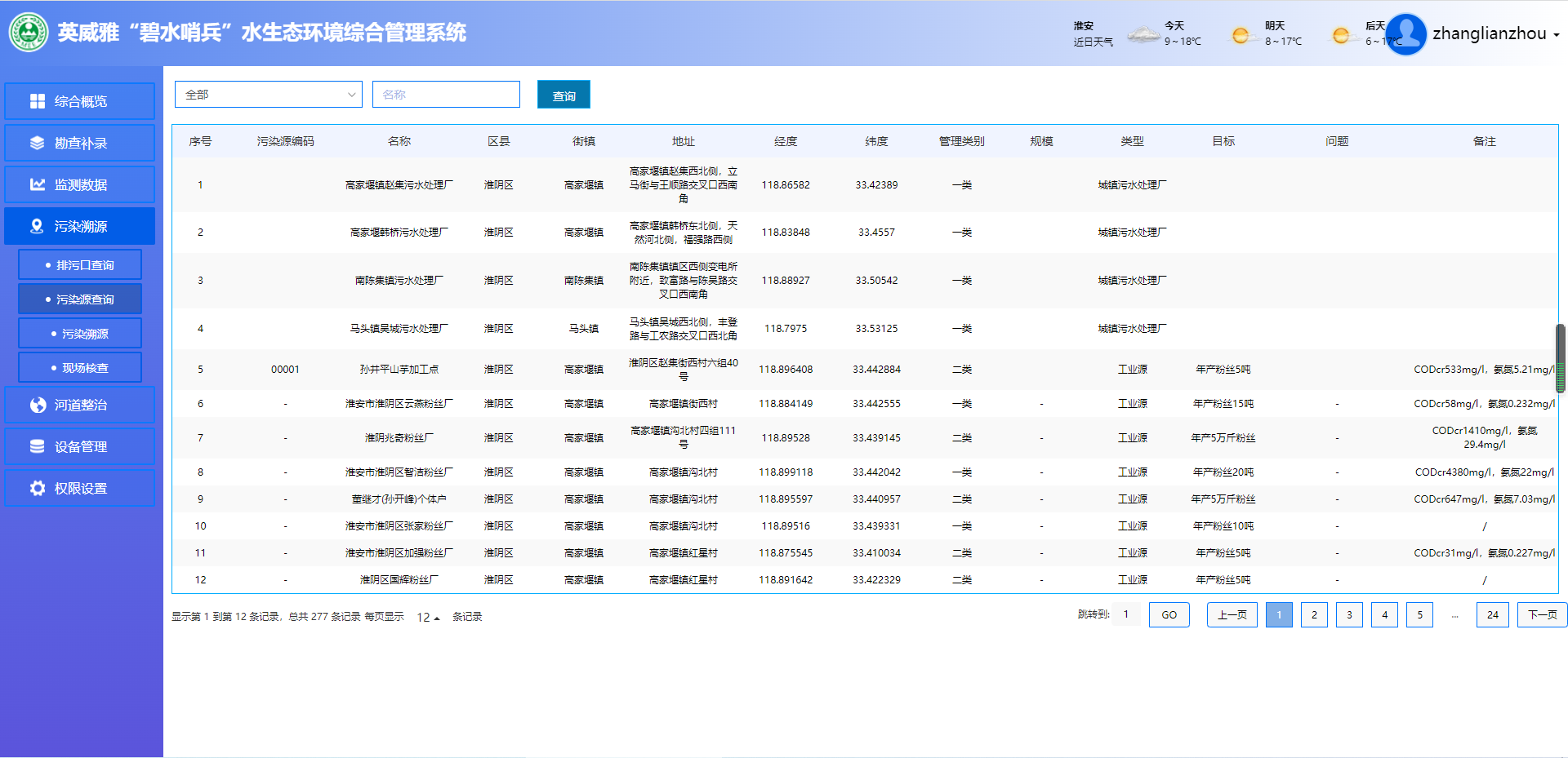 利用水质“一张图”,清晰地呈现河流-断面-排污口-污染源的拓扑关系,实现污染溯源功能。