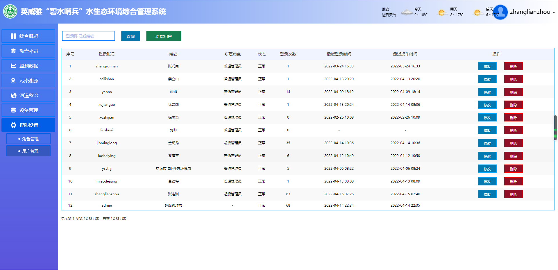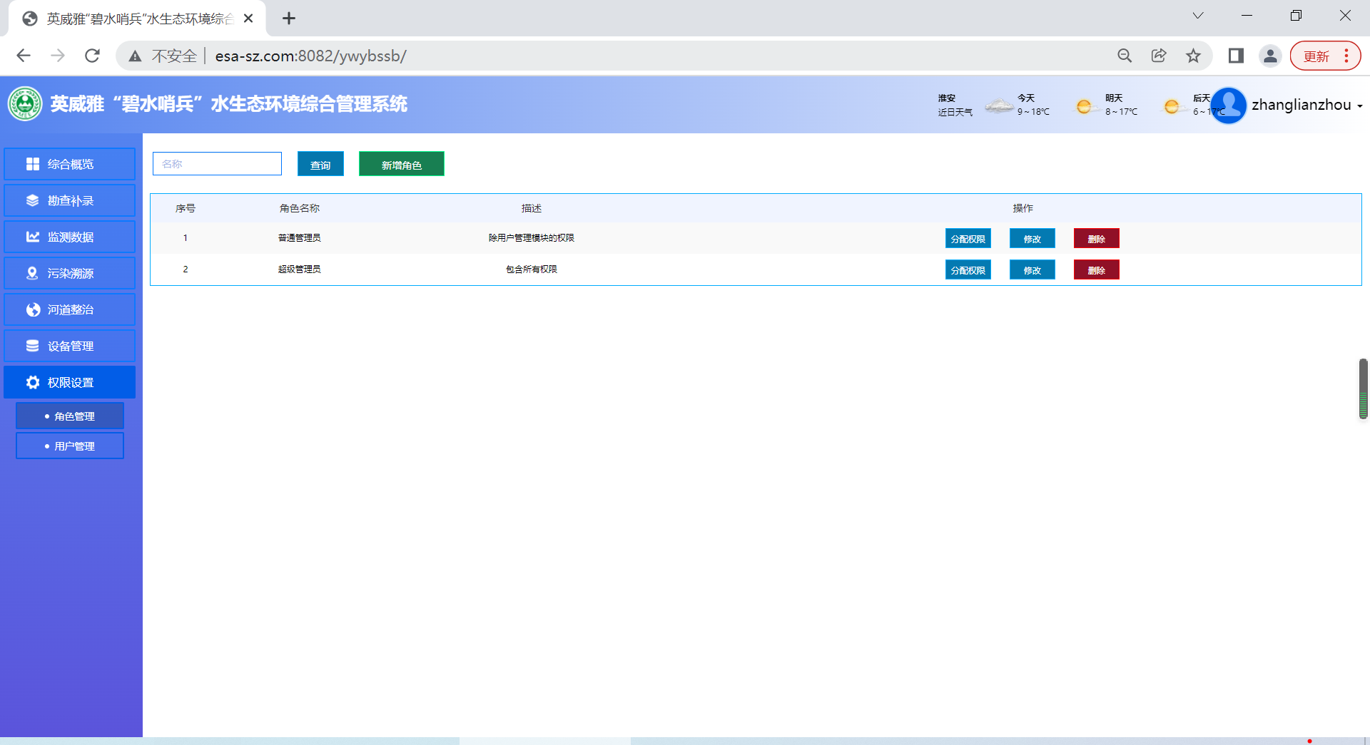数据安全是“碧水哨兵”系统的关键之一。系统提供角色管理和用户管理功能,确保业主数据资产安全: